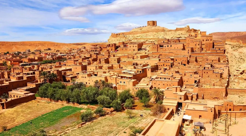 - Travel from Ouarzazate through Skoura, Dades Valley, Todra Gorge, Merzouga, and the Draa Valley